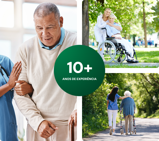 Cuidadores especializados em um atendimento humanizado, com suporte 24h para o conforto e segurança da sua família.